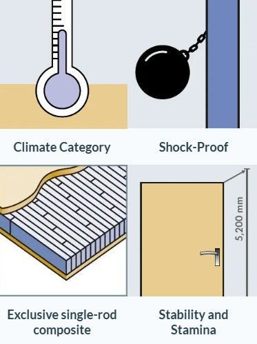 Moralt always offers you additional benefits as a door manufacturer. As part of our extensive testing program for LAMINESSE, we have further developed this sheet material into a door core for climate doors with c3 classification according to EN 1530:2000-6 and a valid test certificate for doors with a thickness of 44 mm or more. The LAMINESSE Klassik available in size up to 2070 x 5200mm is ideal as an NFR apartment entrance door or for separating rooms of different climates. Or simply for a high quality, solid laminated timber handcrafted interior door.